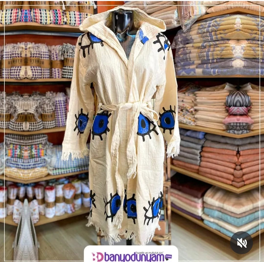 %100 ORGANİK PAMUK, MÜSLİN PEŞTEMAL BORNOZ