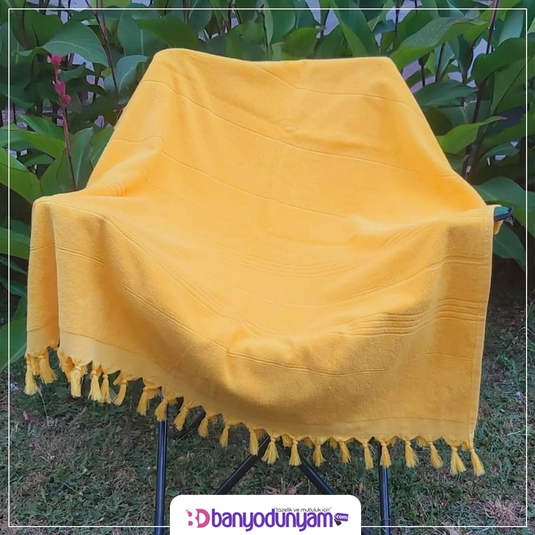 %100 Pamuklu Havlu Peştemal Sarı 90X180 cm