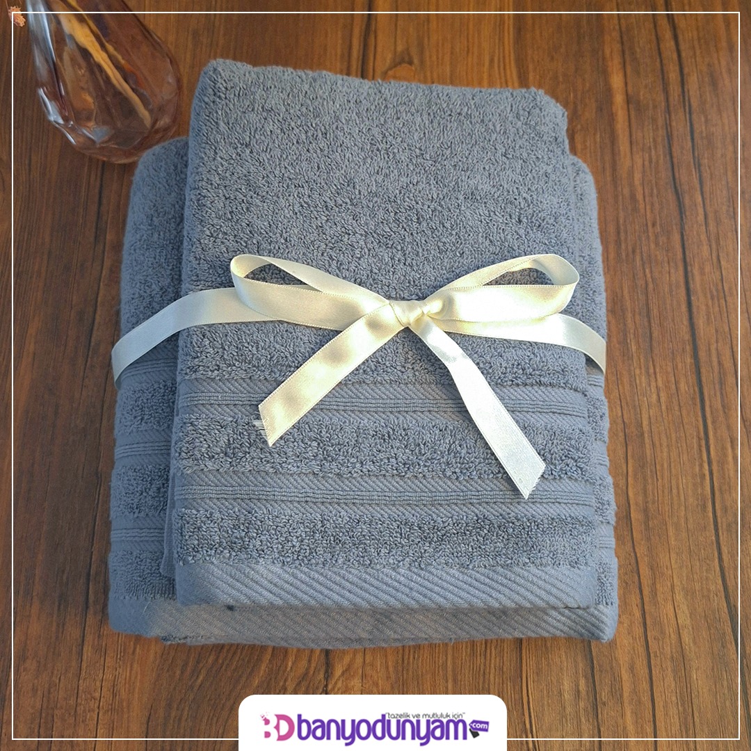 Gri Banyo Havlu Seti (70x140 cm banyo havlusu 50x90 cm baş havlusu)