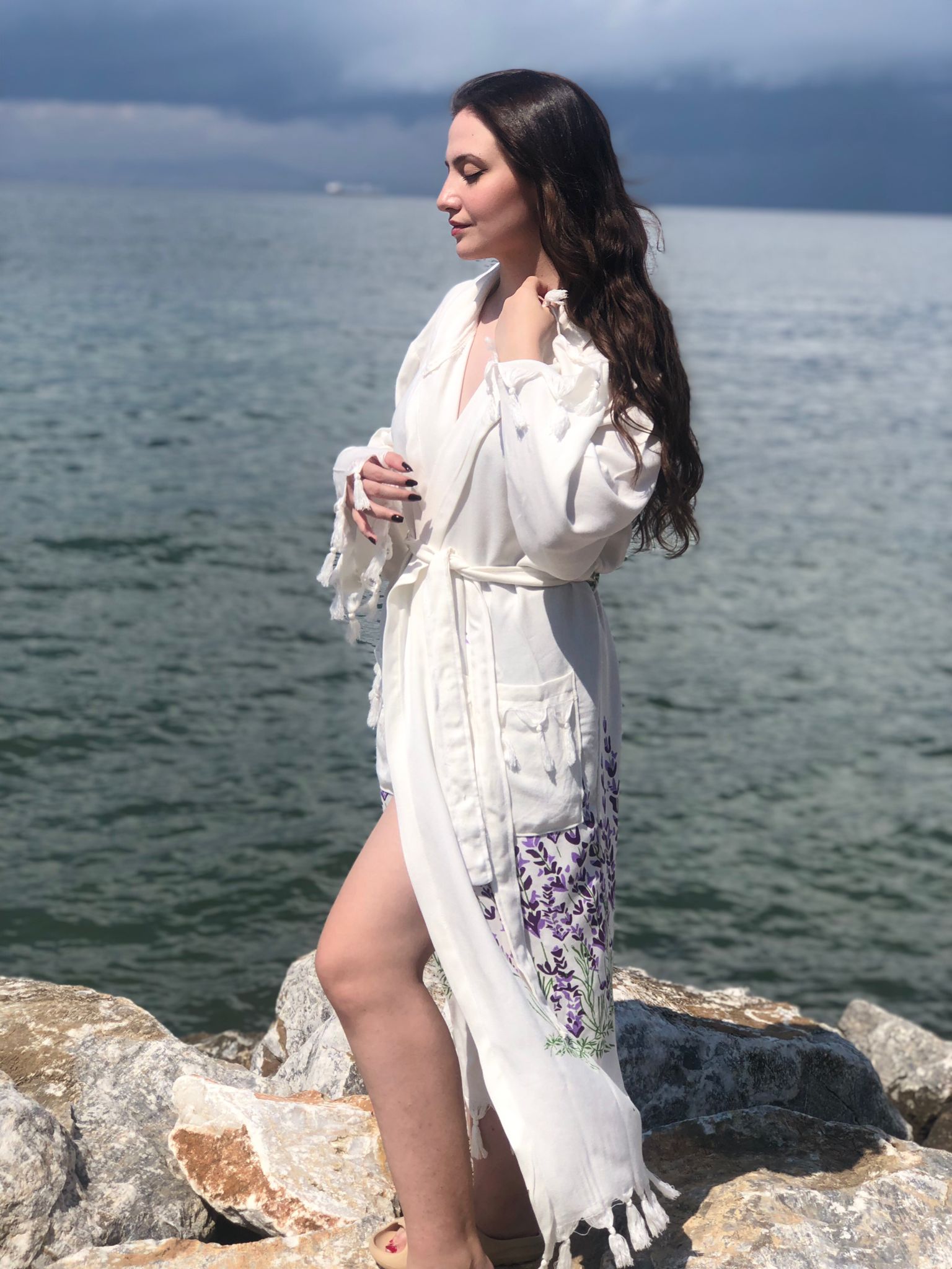 * Kapüşonlu, uzun kollu, belden kemerli, 110 cm uzunluğundadır.