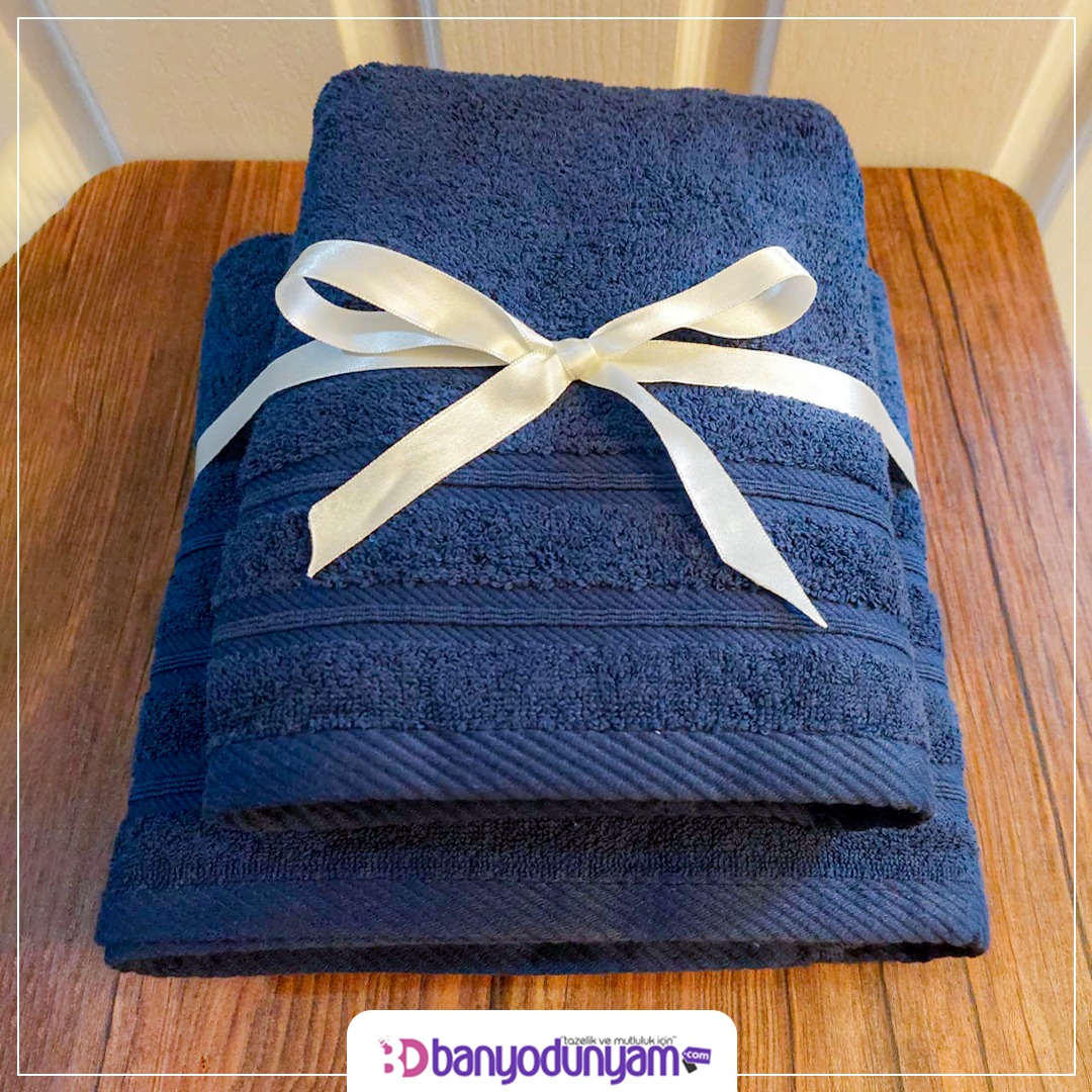 Lacivert Banyo Havlu Seti (70x140 cm banyo havlusu 50x90 cm baş havlusu)