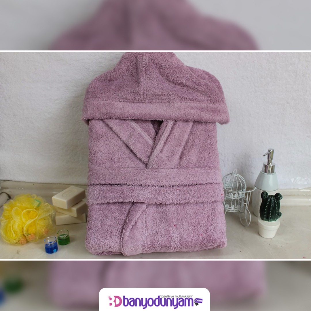 Pamuklu Havlu Bornoz Lila Rengi