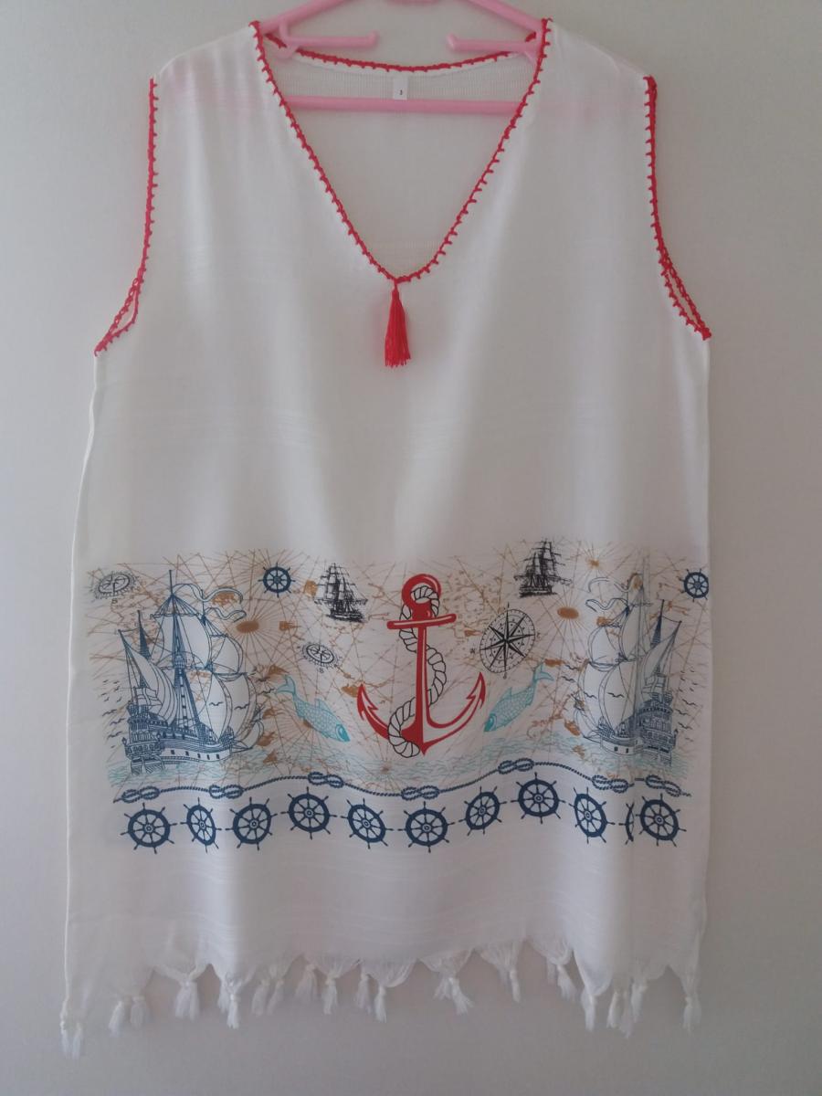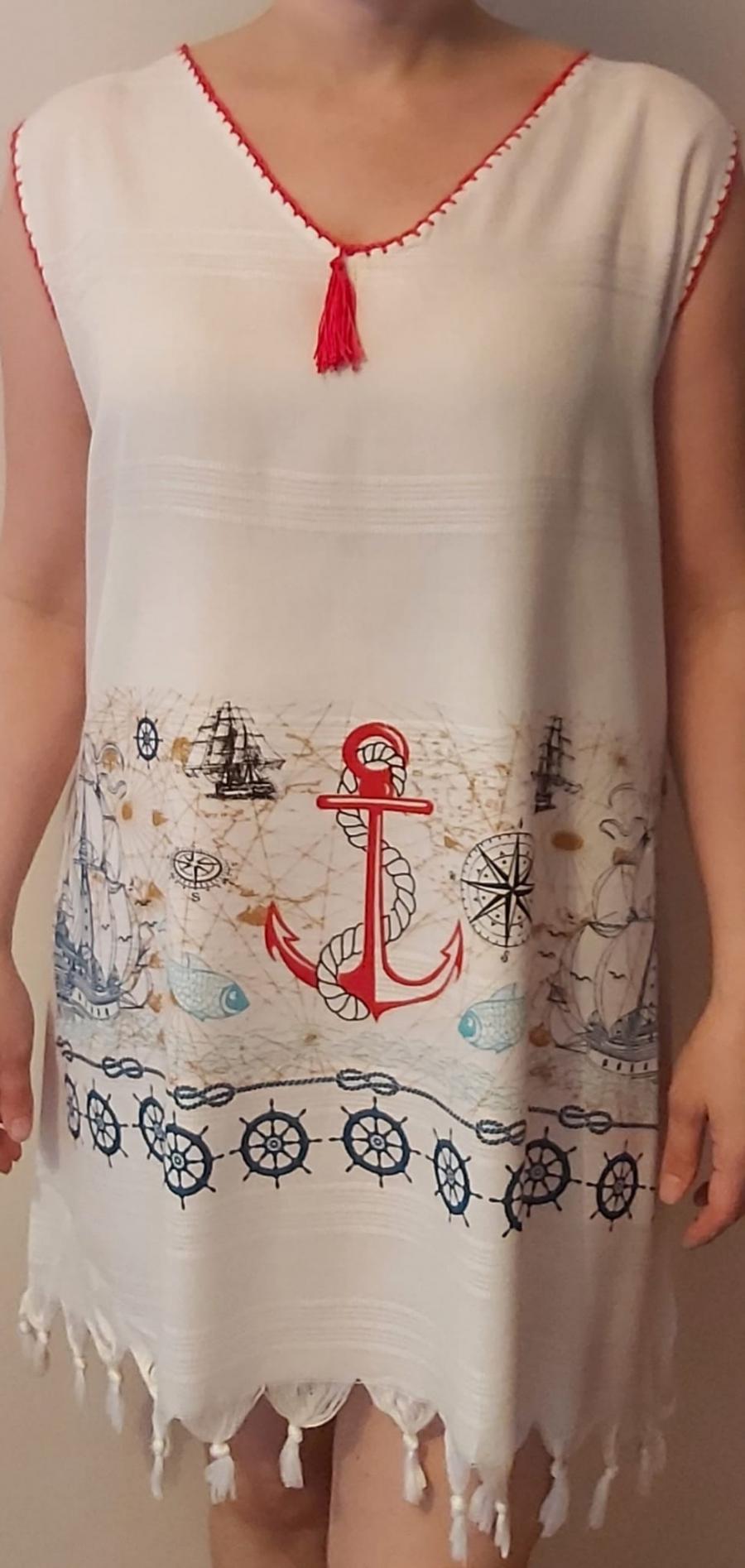 Peştemal Plaj Elbisesi Çapa Desenli